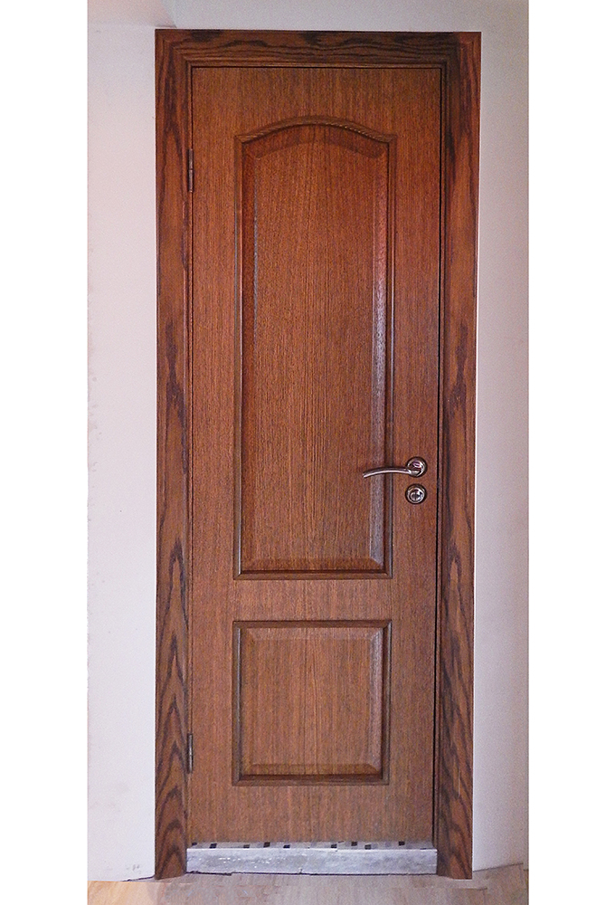 Глухая межкомнатная дверь выполнена в классическом стиле и декорирована фигурными филенчатыми вставками в приятном коричневом цвете с древесной текстурой, которая придает модели очень элегантный и благородный внешний вид.