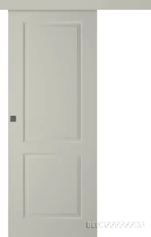 код 147103Глухая дверь-купе в цвете шёлк, украшенная двумя филенками разных размеров. Каркас выполнен из массива.