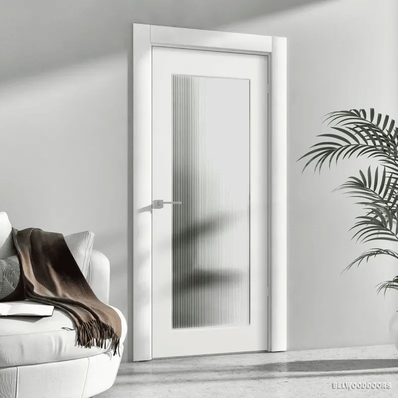 Двухстворчатые раздвижные двери с рифленым стеклом.