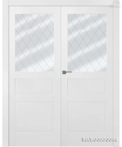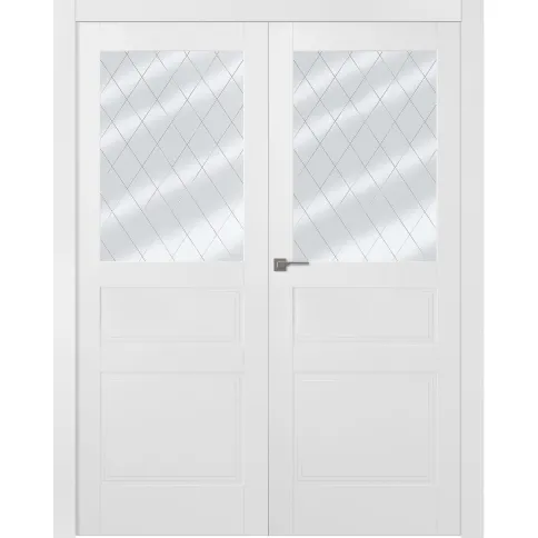 код 147183Двойная межкомнатная дверь с витражным стеклом в универсальном и лаконичном стиле.