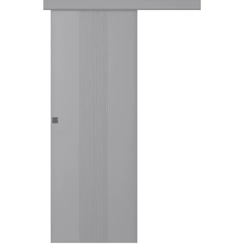 код 147177Межкомнатная дверь-купе с рельефом из глубоких линий на полотне.