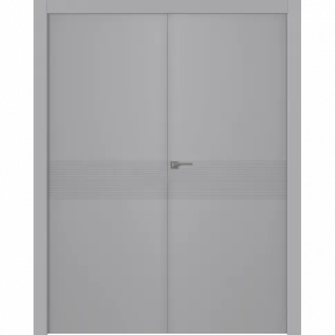 код 147191Современная двойная межкомнатная дверь с рельефом из глубоких линий.