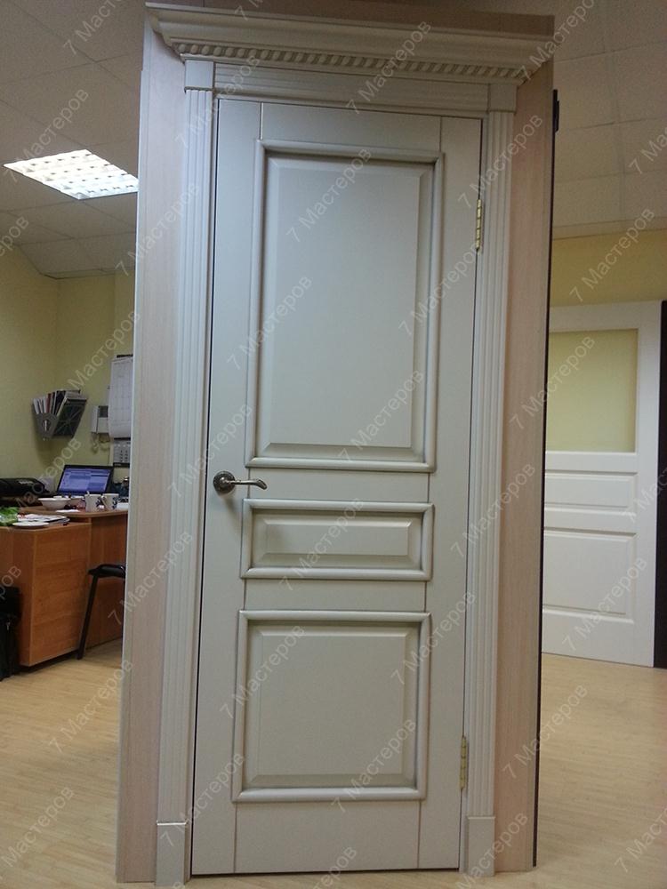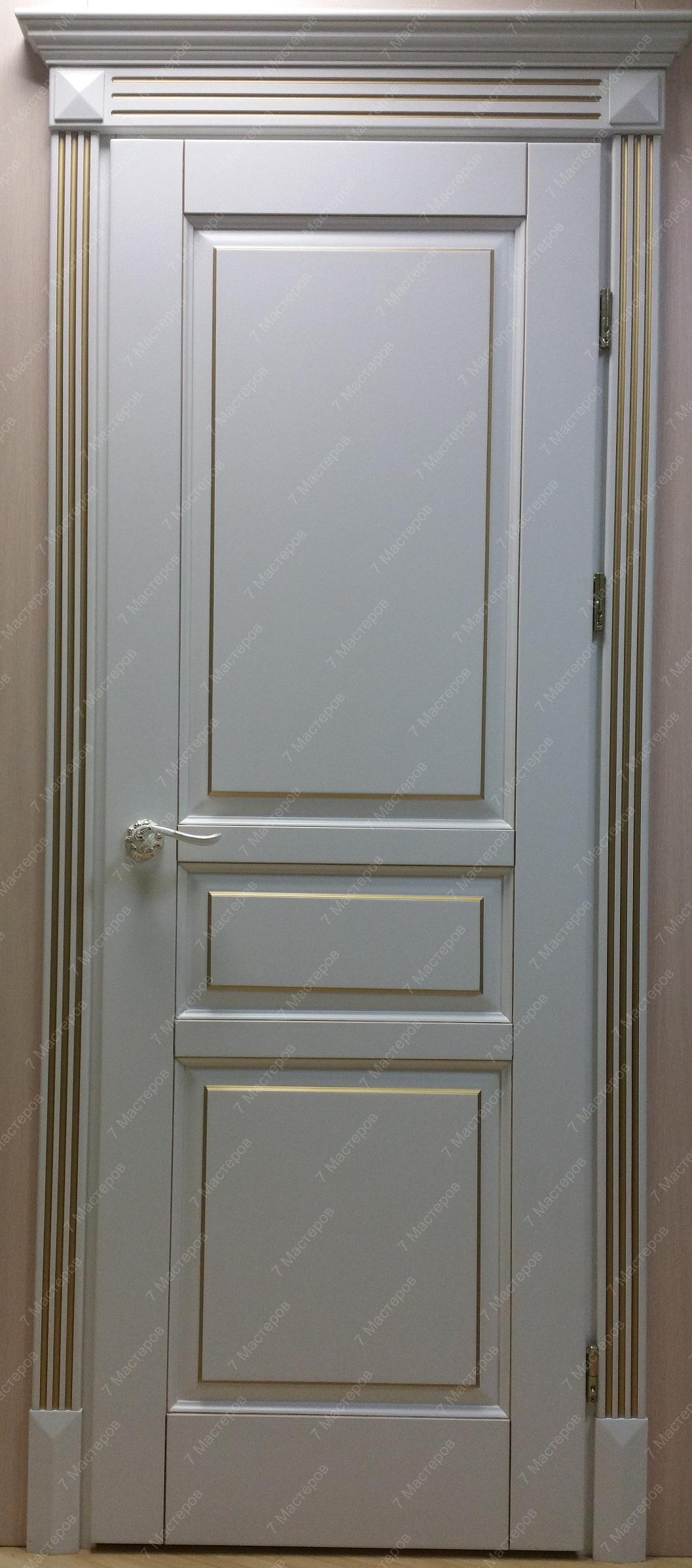Оригинальная межкомнатная дверь отличается классическим дизайном и отделкой методом патинирования, которое придает двери особый шарм. Мощный и внушительный декор, с плавными резными линиями и инкрустацией арки делает дверь одним из самых привлекательных элементов комнаты.