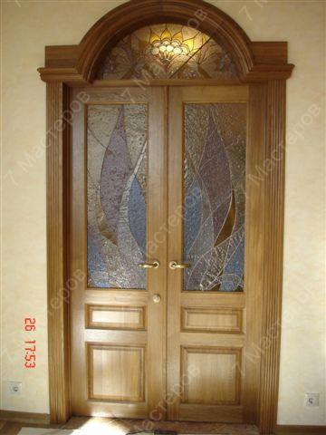 Межкомнатная дверь из массива с витражными вставками