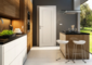 Современный дизайн:модель Либра 1 сочетает в себе сразу несколько модных тенденций, включая минималистичное оформление полотна, где центральная часть межкомнатной двери эффектно окружена декором в виде 3D-фрезеровки.