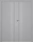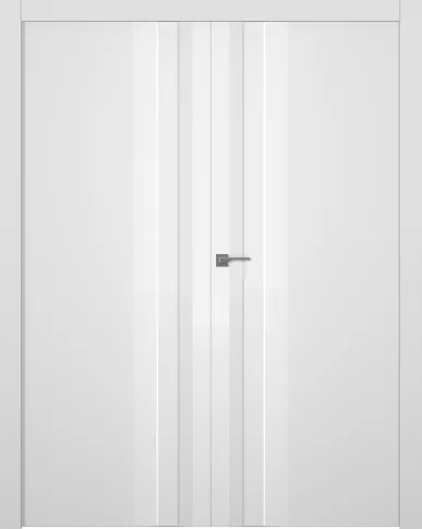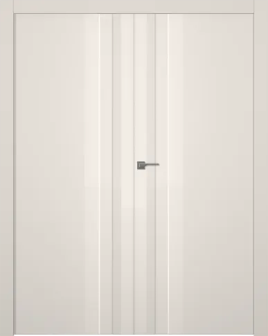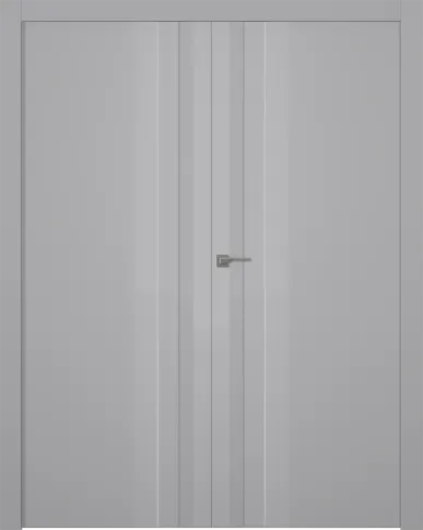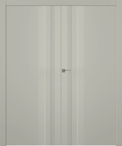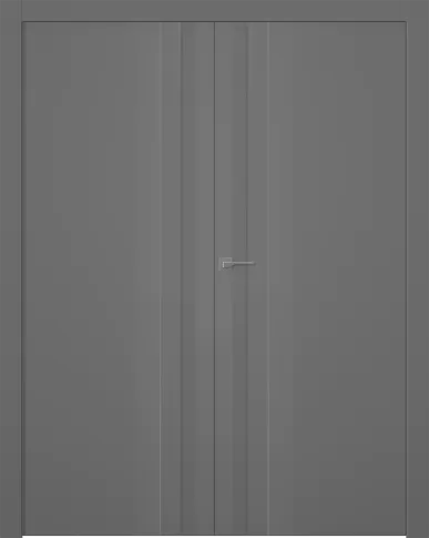 код 147198Двойная межкомнатная дверь в минималистичном оформлении полотна с рельефным переходом около ручки.