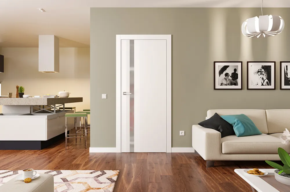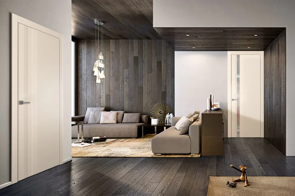 Современный дизайн: минималистичное оформление полотна с рельефным переходом около ручки будет гармонично смотреться в любом интерьере. Слайд — выразительная и эффектная модель межкомнатной двери, которая станет не только функциональным, но и эстетически привлекательным акцентом в доме или квартире.