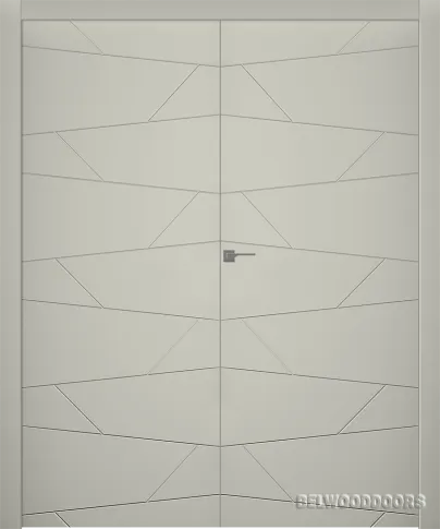 код 147136Двойная межкомнатная дверь со строгой геометрической фрезеровкой. Толщина полотна 44 мм.