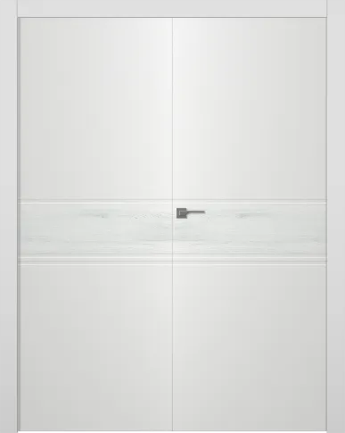 код 147185Двойная межкомнатная дверь с горизонтальной вставкой из натурального брашированного шпона дуба.