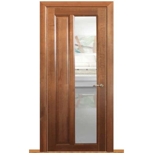 код 25149Межкомнатная дверь однотонного коричневого цвета. Правая часть полотна остеклена.