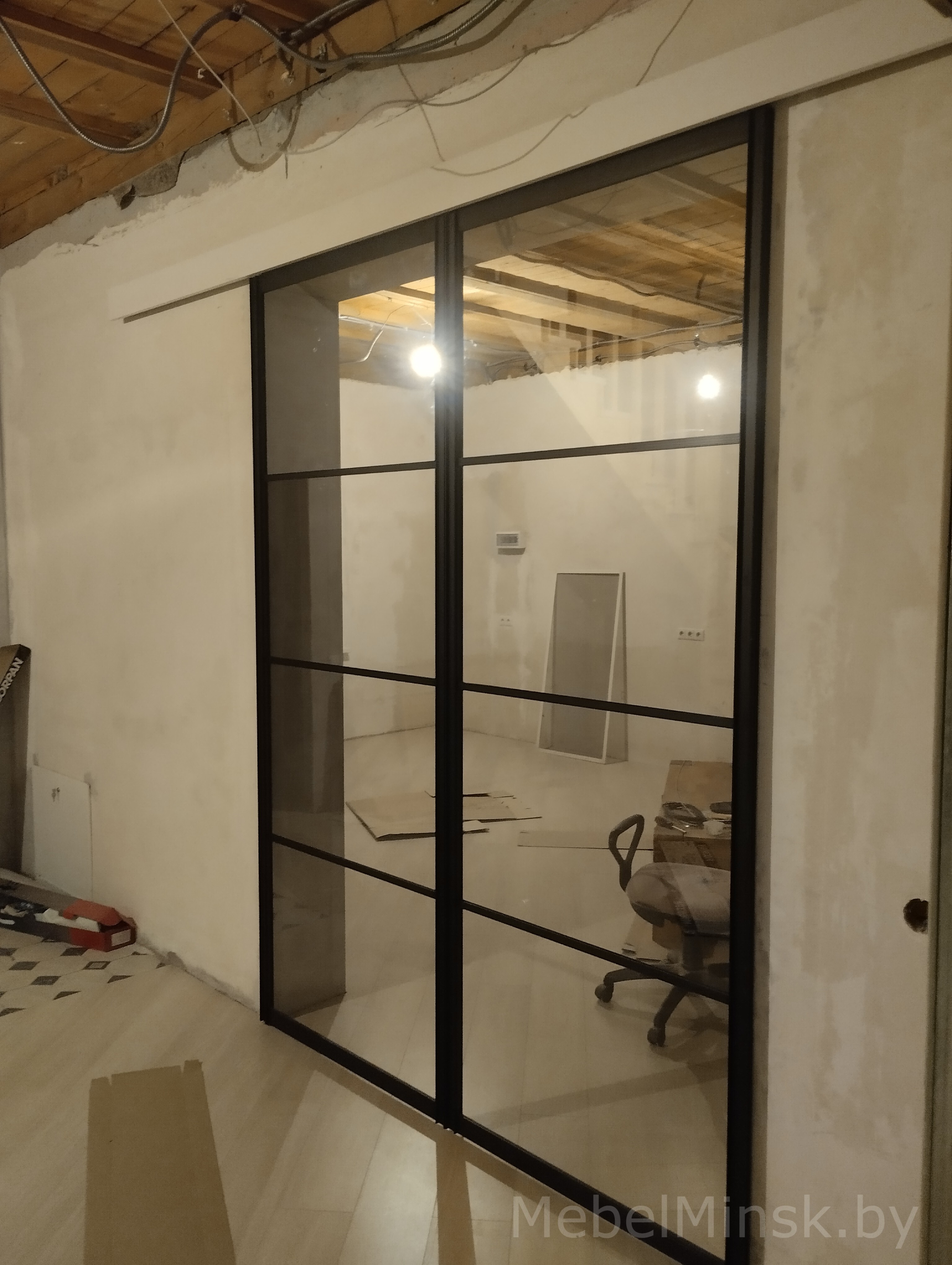 Стеклянная перегородка с 1 раздвижным и 1 статичным полотном