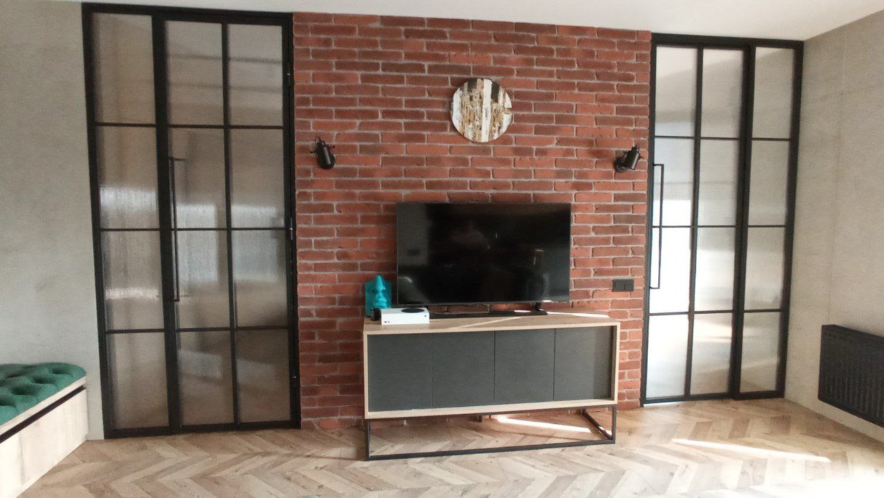 Подвесная межкомнатная перегородка между кухней и гостиной