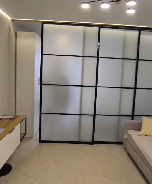 Подойдет для зонирования пространства в гостиной, спальне, гардеробной или даже кухни. Перегородка представляет собой полотно из профиля, который может быть наполнен стеклом, пластиком, акрилом или их комбинациями. Раздвижной механизм позволяет перемещать створки вдоль направляющих в одну или обе стороны.