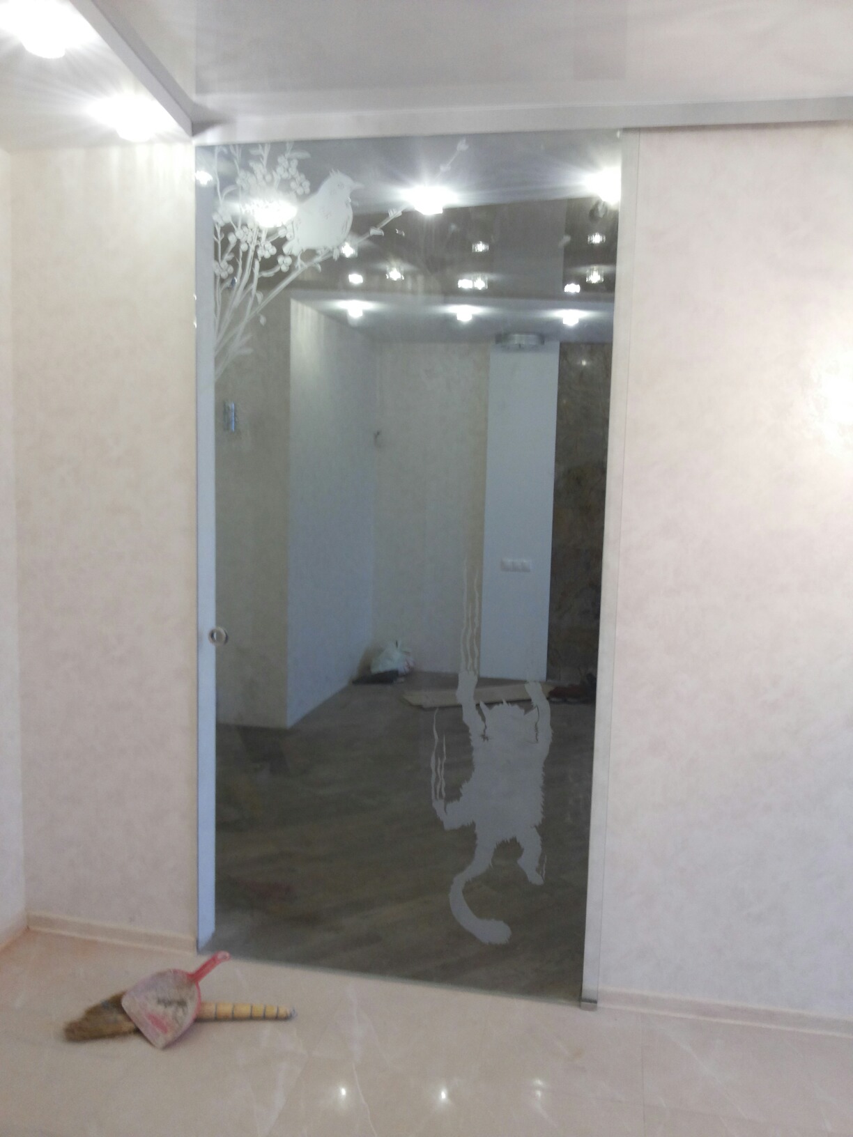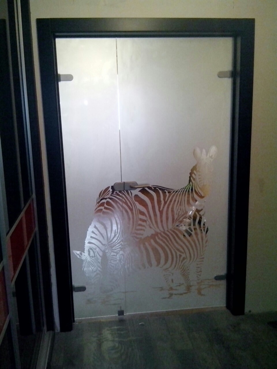 Стеклянные двери весьма популярны в современном оформлении делового пространства и часто применяются в оупен-спейс/open space для интерьеров как офисов, так и жилых помещений. В выборе пескоструйного рисунка вы практически не ограничены фантазией, может быть выбран как стильный абстарктный рисунок, поп-арт, так более естественное изображение на усмотрение потребителя.