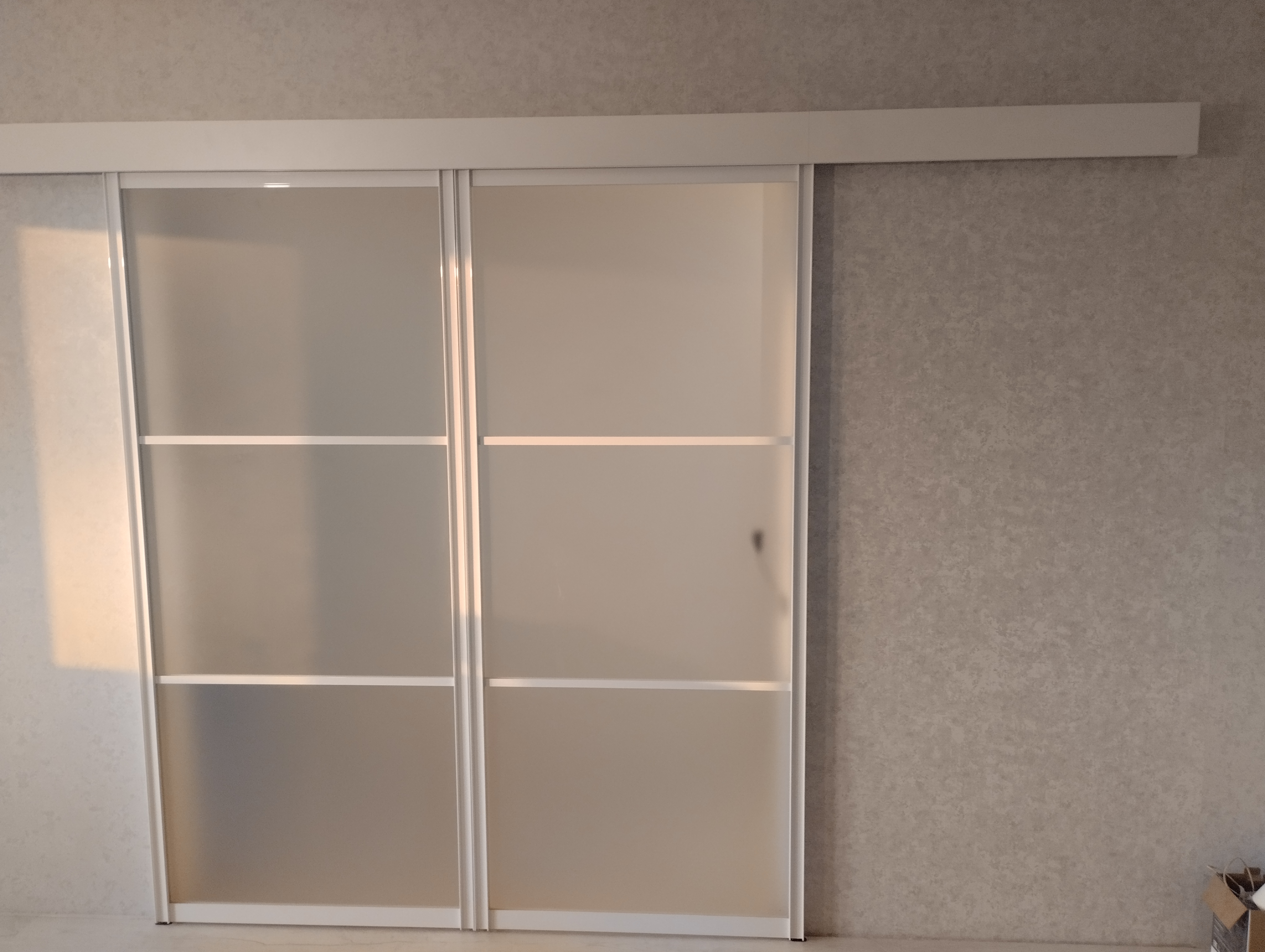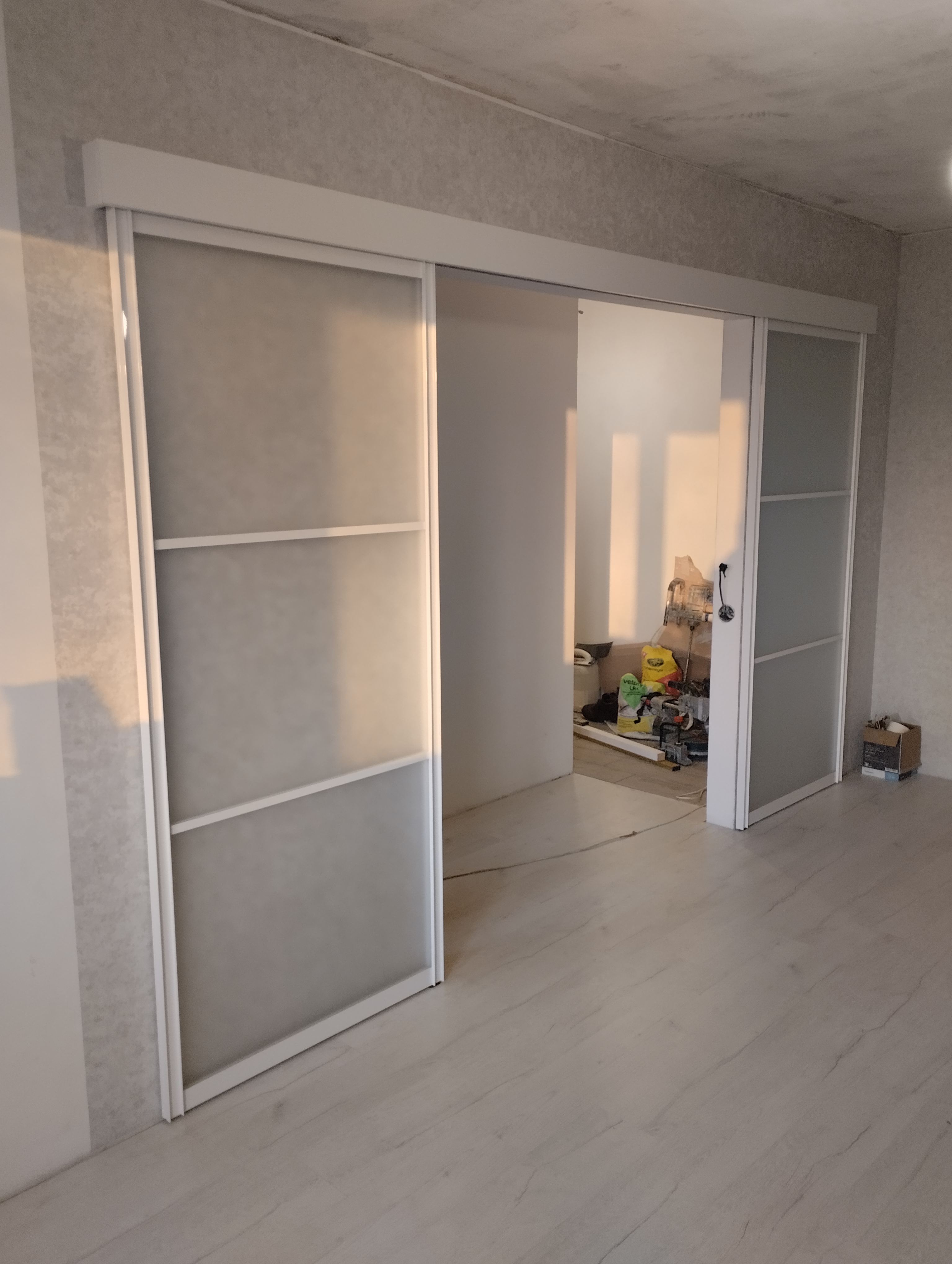 Стеклянная раздвижная дверь-перегородка 2 полотна