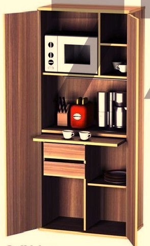 Можно встроить холодильник, "спрятать" микроволновку, посуду.