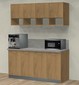 Можно встроить холодильник, "спрятать" микроволновку, посуду.