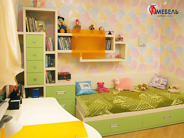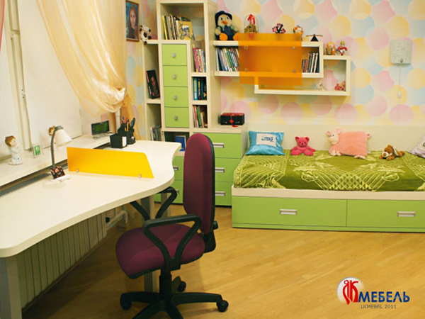 Эстетичная модульная коллекция мебели для обустройства детской комнаты. Материал: МДФ покрытый плёнкой, ЛДСП.