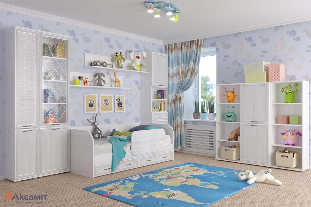 Эстетичная модульная коллекция мебели для обустройства детской комнаты. Материал: МДФ покрытый плёнкой, ЛДСП.