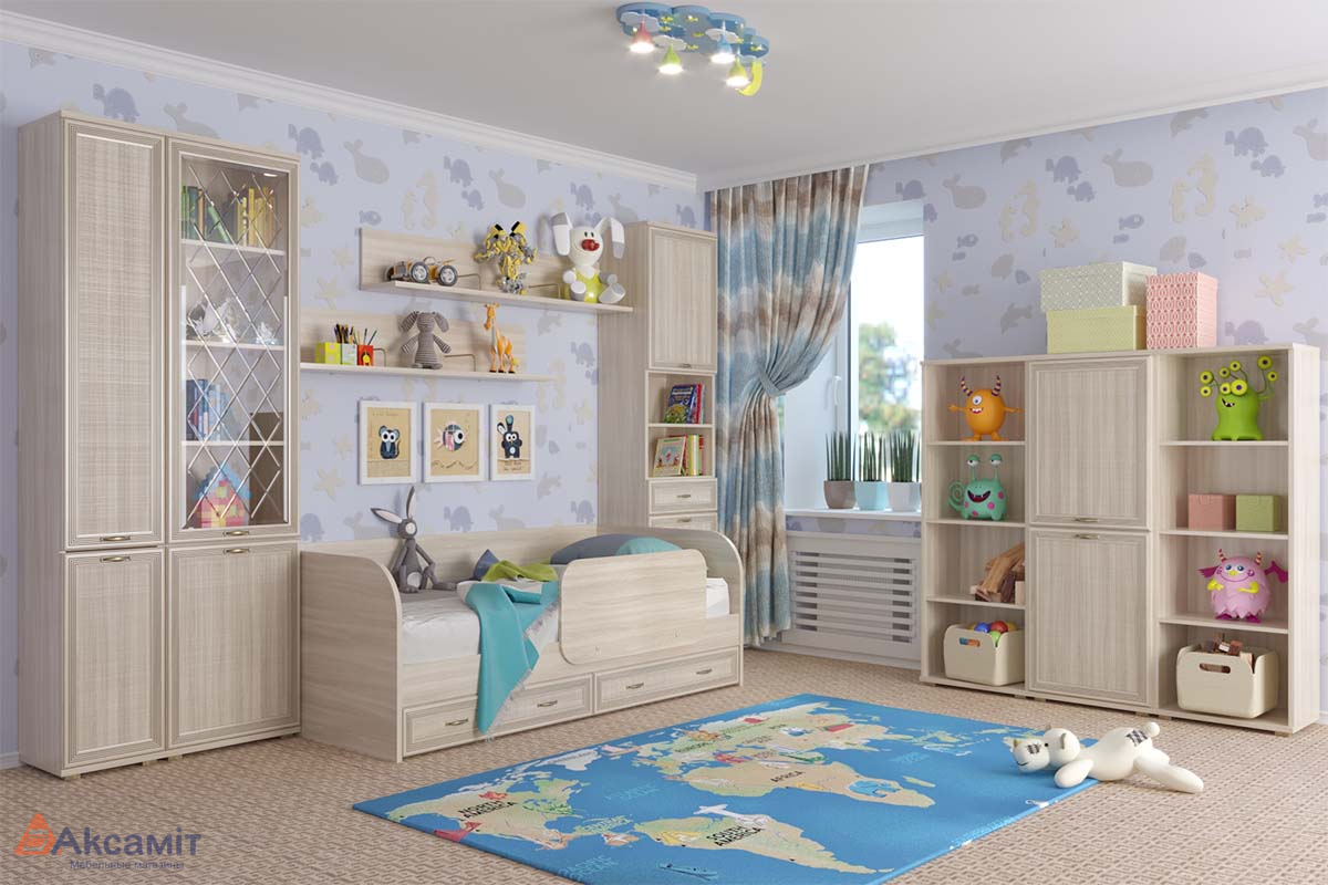 Модульная коллекция мебели для обустройства детской комнаты. Материал: МДФ покрытый плёнкой, ЛДСП.