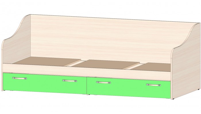 Детская Буратино Кровать с ящиками зелёный. Габариты 2032(Ш) х 930(Г) х 750(В) мм. Материал ЛДСП. Цвет дуб мол./зеленый. Кромка ПВХ. Универсальная сборка на любую сторону. Спальное место под матрас 900 х 2000 мм.