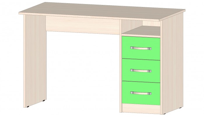 Детская Буратино Стол с ящиками зеленый. Габариты 1150(Ш) х 590(Г) х 750(В) мм. Материал ЛДСП. Цвет дуб мол./зеленый. Кромка ПВХ. Роликовые направляющие.