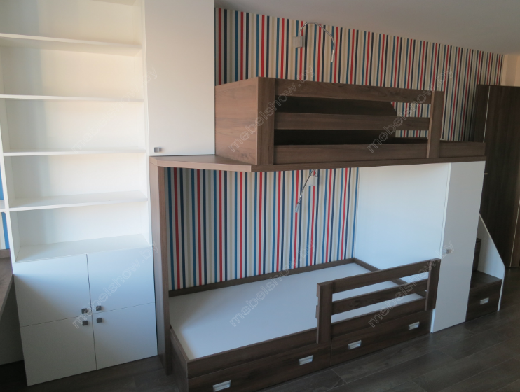Набор включает в себя двухъярусную кровать, шкаф 2ств, комод.