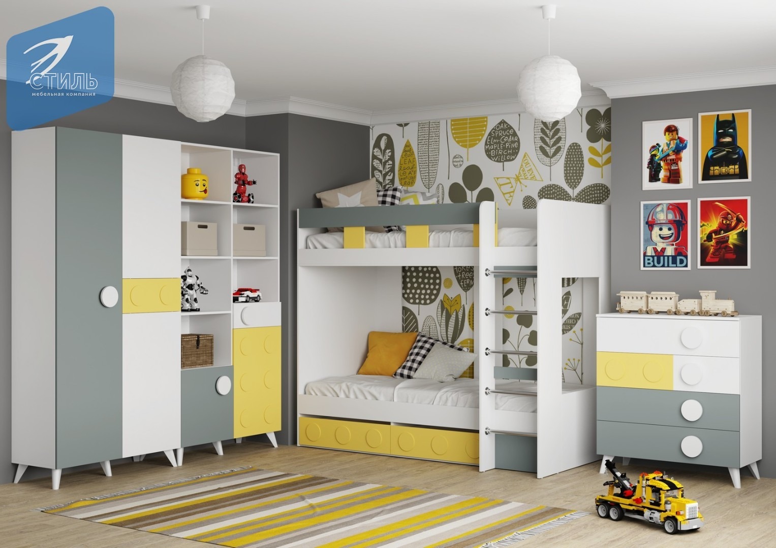 Детская комната «КУБО» Комплект 2 - Белый гладкий/Грин Грей Софт (МК Стиль)
