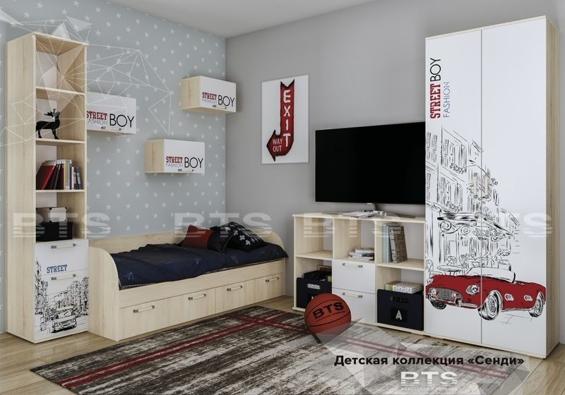 Коллекция Сенди создана для любимых непосед: увлеченных, творческих и активных. Каждый из них найдет свою любимую деталь: классное авто, стильную девушку, оживленную улицу. При этом стиль коллекции будет интересен юным жильцам долгие годы, позволяя дополнять его необходимыми аксессуарами, соответствующими увлечениям своих юных обладателей.