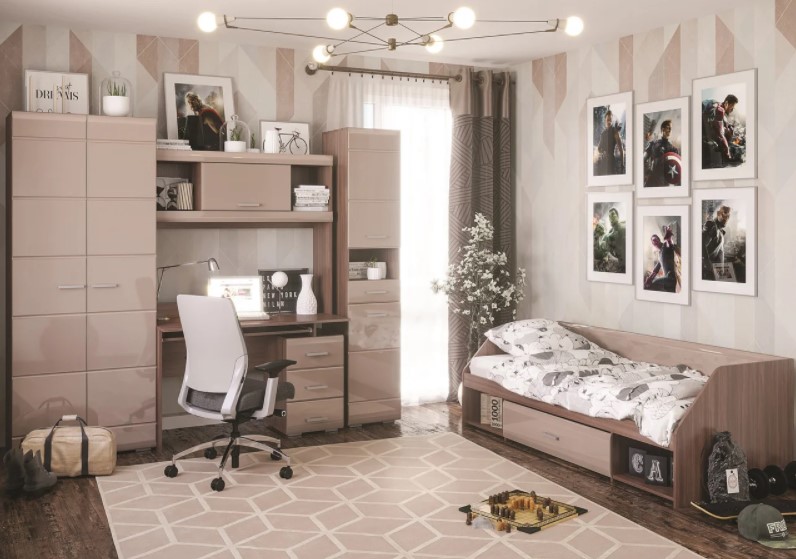Коллекция корпусной мебели в кремовом оттенке для детской. Материал: ЛДСП, МДФ.