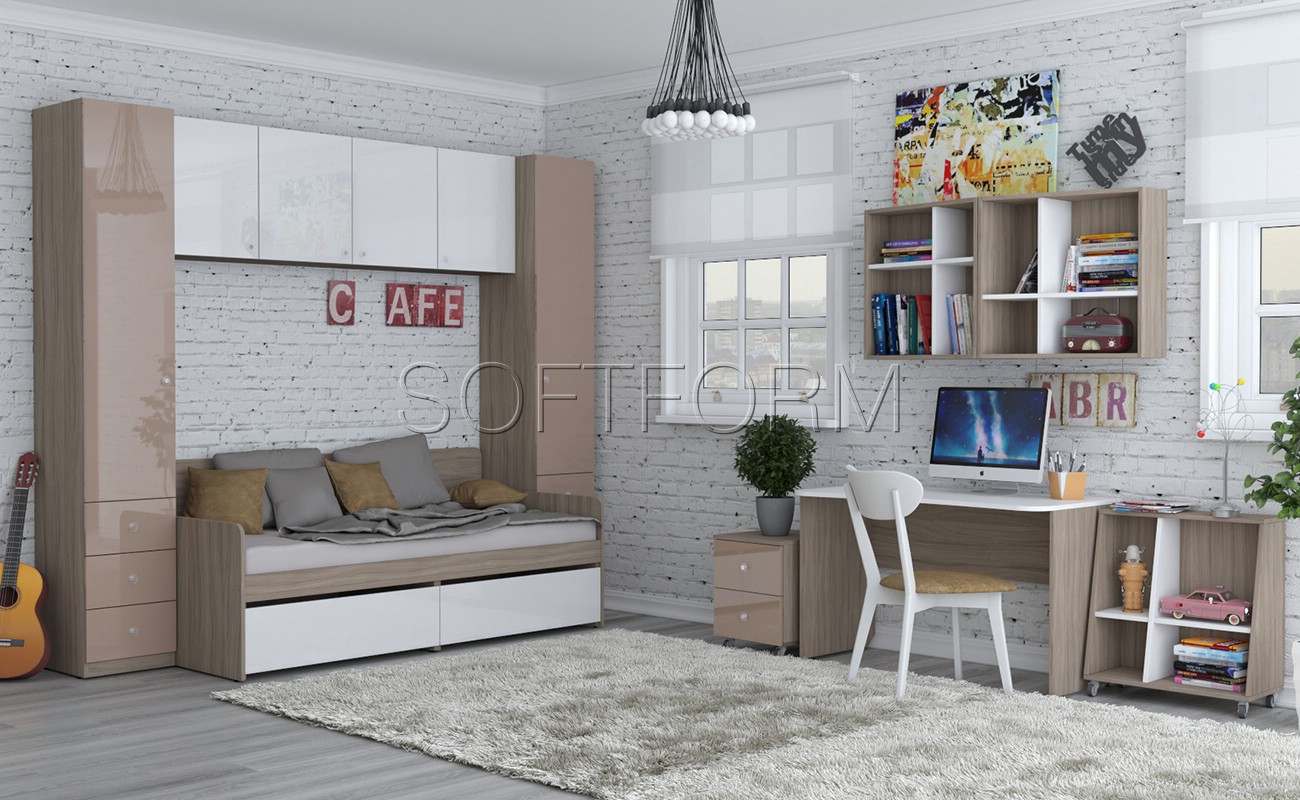 Коллекция мебели в современном стиле для обустройства комнаты подростка. Материал: ЛДСП.