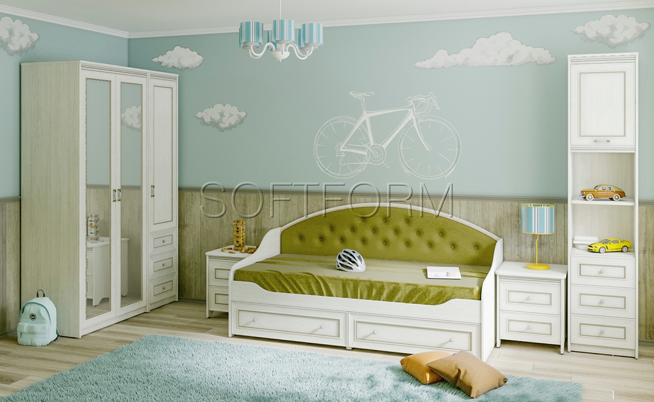 Коллекция корпусной мебели в кремовом оттенке для детской. Материал: ЛДСП, МДФ.