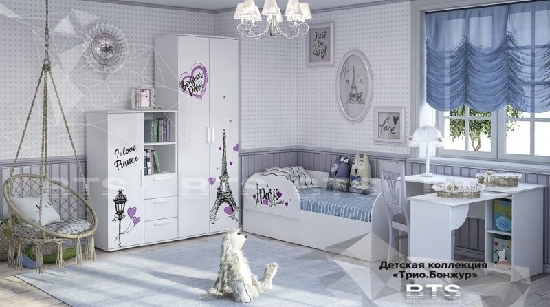 Маленькая парижанка, девочка, любящая все весеннее, сияющее и утонченное - вот для кого создана коллекция мебели для детской "Трио. Бонжур".
