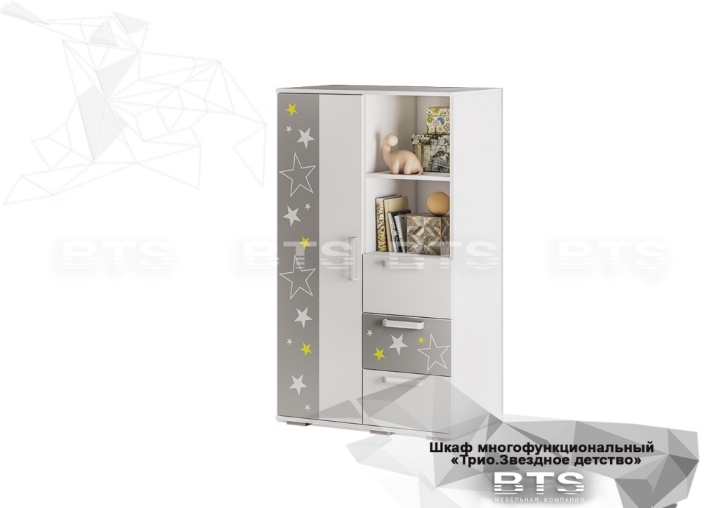 - Трио Шкаф многофункциональный ШК-10, Звездное детство (ШхВхГ): 802х1376х460