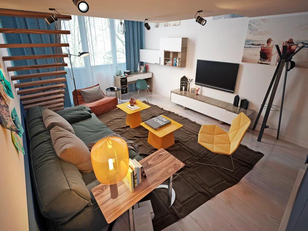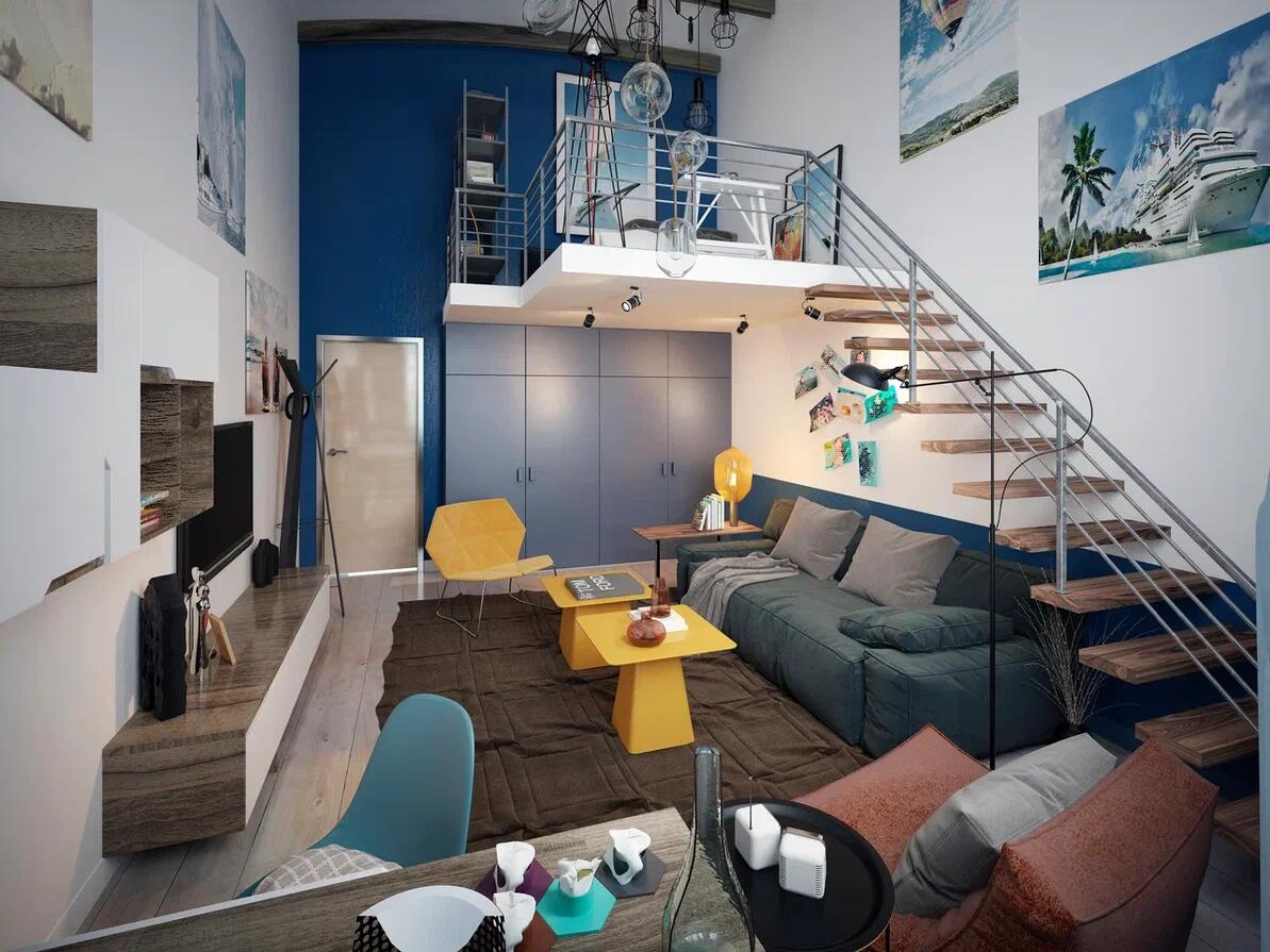код 129931Подростковая современная комната со спальным местом на втором этаже. Материал: ЛДСП.