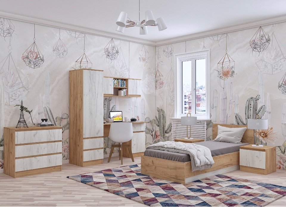 код 128162Модульная коллекция мебели для детской комнаты. Цвет: крафт дуб золотой/белый.