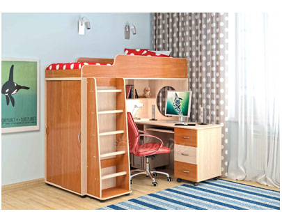 Детская мебель светлая «Легенда 5 со столом» состоит из комфортной кровати-чердака, эргономичного компьютерного стола полной комплектации, стеллажа для книг и вместительного шкафа.