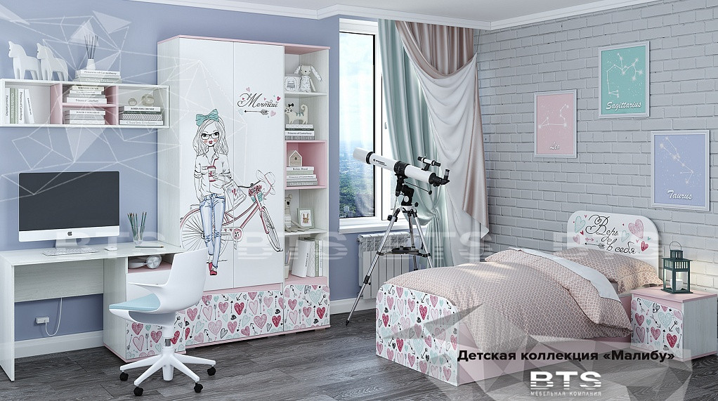 Модульная коллекция мебели из ЛДСП с принтом на фасадах.