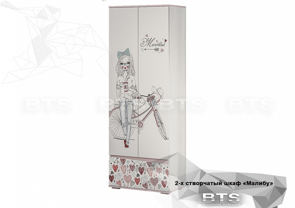 - Шкаф двустворчатый Малибу ШК-19 - 802 х 2176 х 460 мм