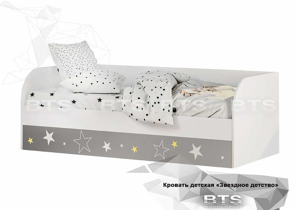 - Детская кровать Трио КРП-01 с защитным бортиком (Звездное детство)-1892 х 640 х 833 мм