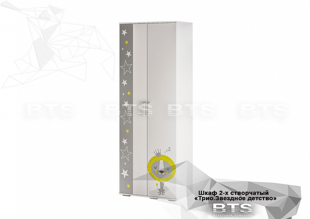 - Двустворчатый шкаф Трио ШК-09 (Звездное детство)- 802 х 2176 х 460 мм