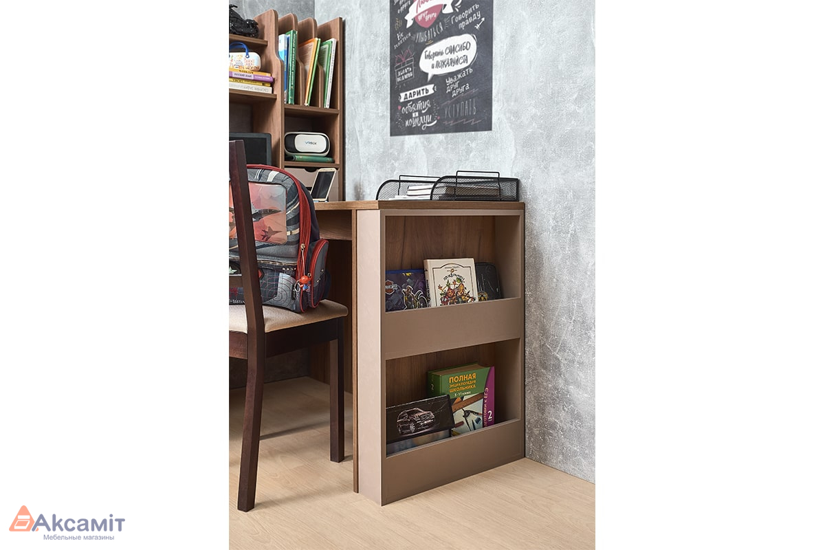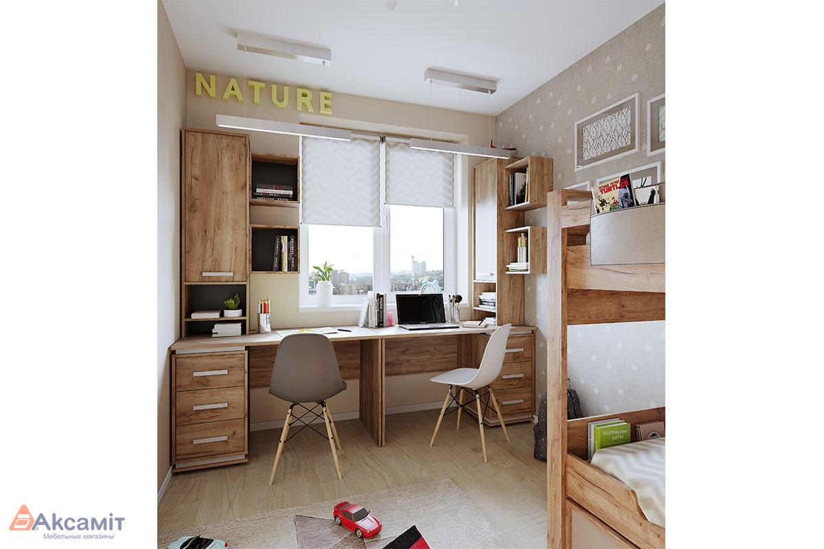 В размещении и хранении всего необходимого для учебы ребенку помогут дополнительные модули коллекции Nature: шкаф-надстройка, стеллаж-надстройка, стол приставной угловой.