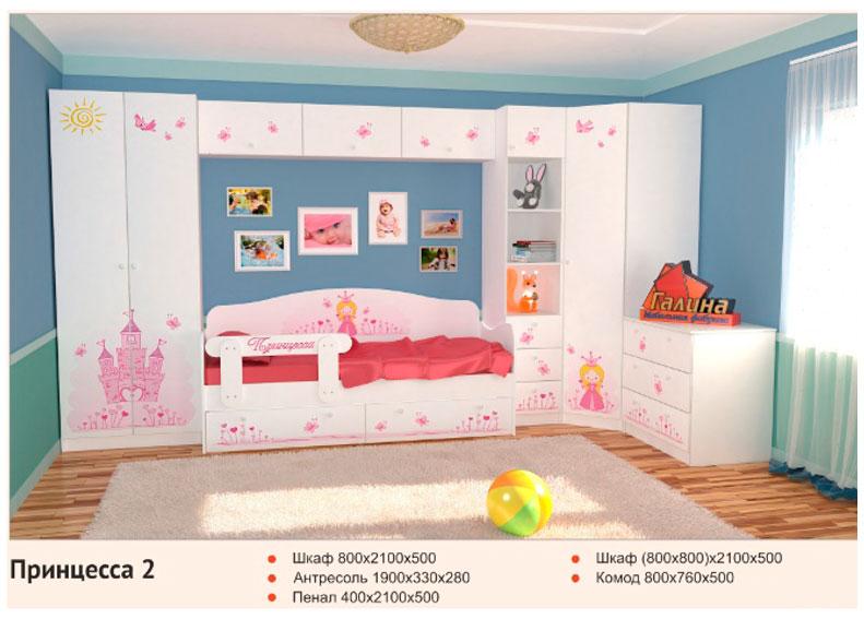 Детская комната «Юниор-2 Принцесса» белая с рисунком