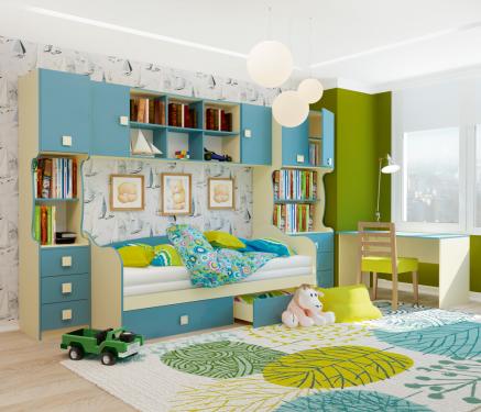 Коллекция мебели в современном стиле для обустройства комнаты подростка. Материал: ЛДСП.