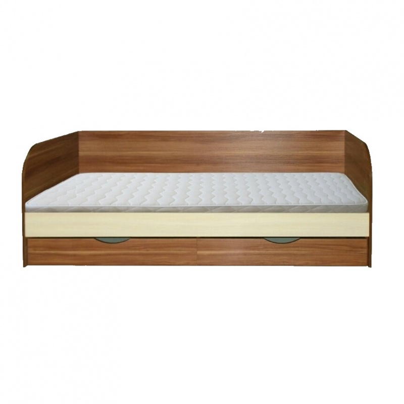 Угловой письменный стол, кровать с ящиками, два пенала, антресоль с полками.