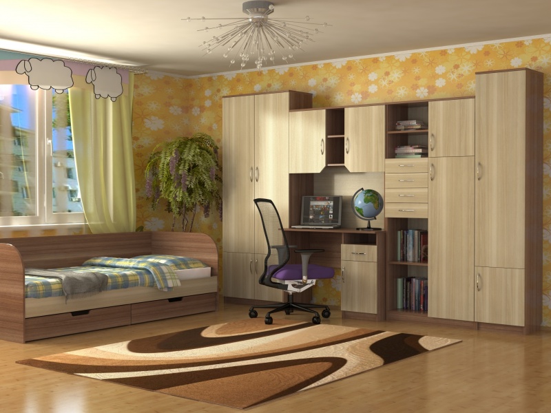 Детская «Юниор» представляет собой вместительный уголок для школьника. Благодаря своему комфортному наполнению детская позволяет хранить множество книг, игрушек, школьных принадлежностей и других необходимых вещей.