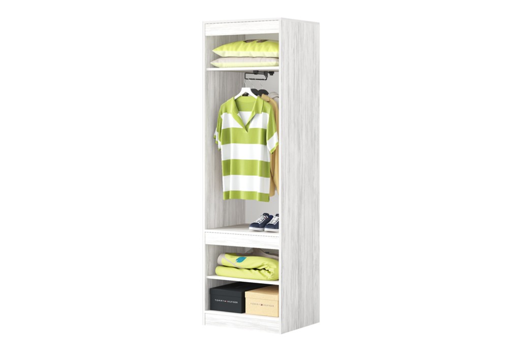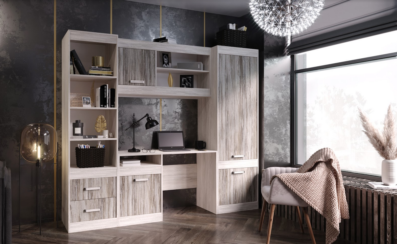 Стильное решение для организации рабочего места и зоны хранения вещей.