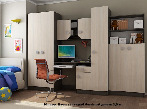Детская «Юниор (3.0 м)» — функциональный мебельный комплекс, который создаст комфортное пространство для учебы, хранения и отдыха. Компактная, но вместительная конструкция включает удобную рабочую зону, шкаф для одежды, книжные полки, пенал и шкафчик. Благодаря продуманной организации хранения все вещи будут в порядке, а рабочее место — всегда готово к учебе. Изготовлена из прочного ЛДСП, устойчивого к износу и механическим повреждениям. Универсальный дизайн подойдет как для мальчика, так и для девочки, гармонично впишется в любой интерьер, обеспечивая уют и практичность.