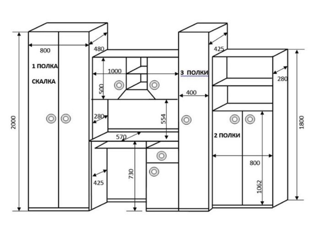 Размер: высота 2000, ширина 3000, глубина 500мм.
