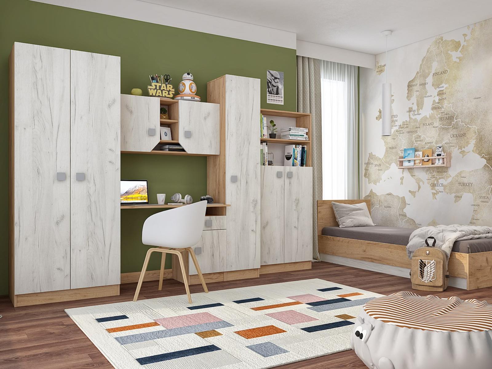 Модульная мебель в скандинавском стиле для организации комнаты подростка. Материал: ЛДСП.